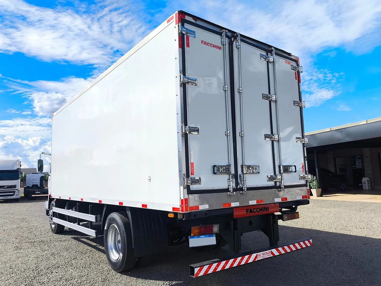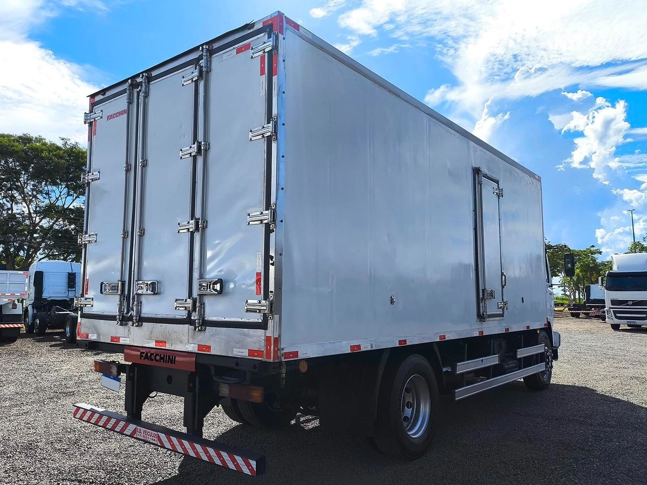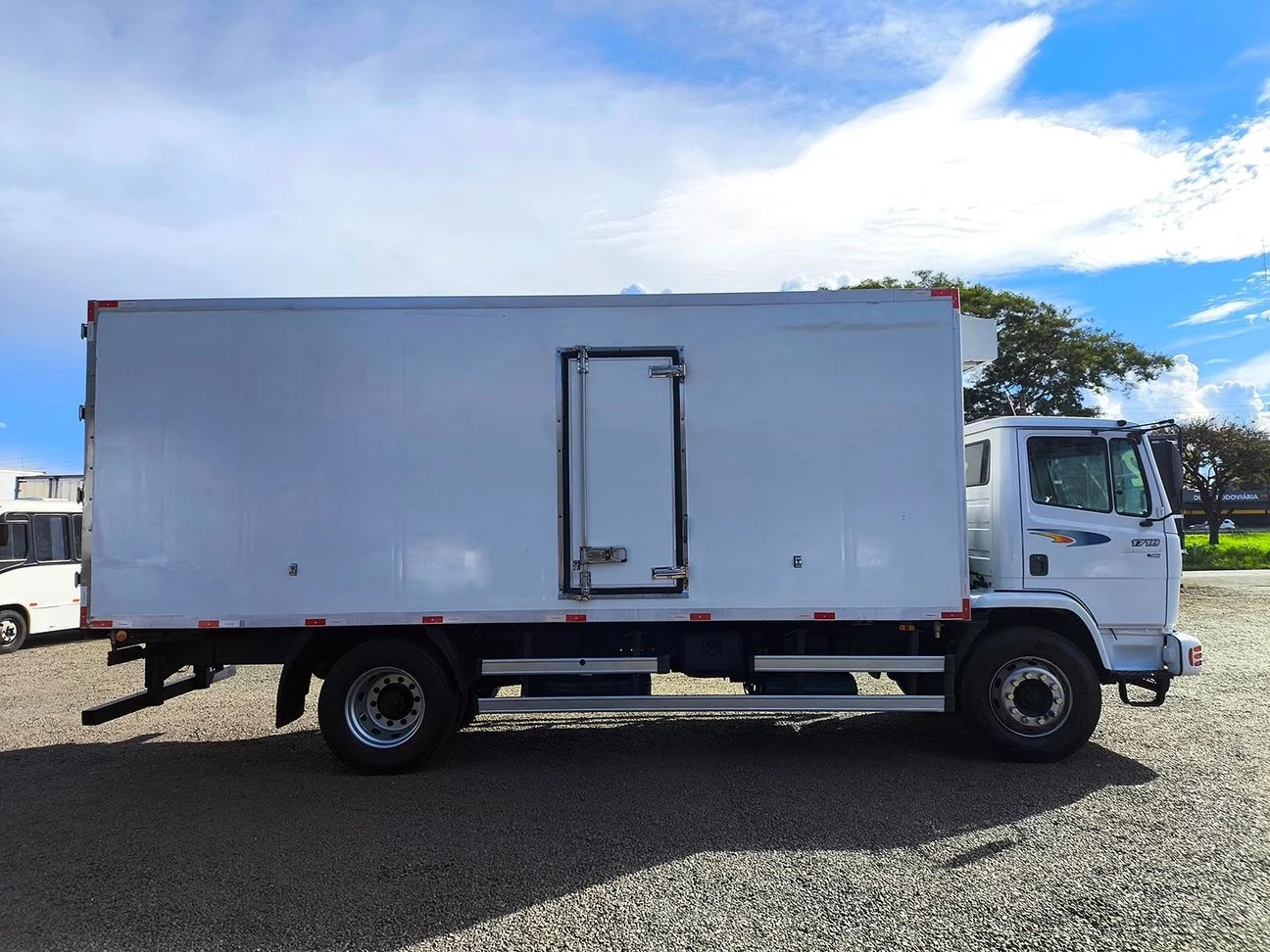Código: 6040 • Tração 4X2• Câmbio manual• Entre-eixo 4,80• Baú canaletado, sem gancheira, porta lateral medidas: C=6,50 X A=2,43 X L=2,54• Aparelho refrigerador gela até 0ºC