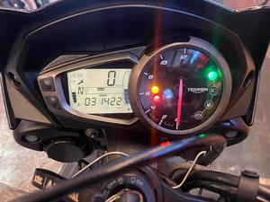Triumph Street Triple S; motocicleta muito bem conservada; equipada com sistema de freios com assistência; controle de tração; pneus em bom estado; pastilhas em bom estado; relação em bom estado; fluidos em dia; óleo do motor em dia; ideal para quem busca uma naked esportiva com excelente desempenho, ciclística precisa e pilotagem envolvente; WILMOTORCYCLES, SUA MOTO ESTÁ AQUI.